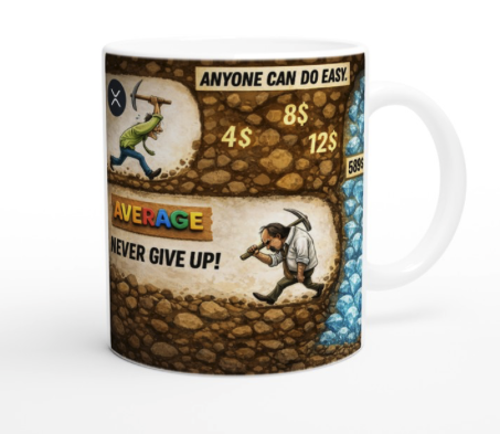 XRP „NEVER GIVE UP“ Tasse – Krypto Kaffeetasse 325 ml | Spülmaschinenfest & mikrowellengeeignet | XRP, XLM & ISOCOIN Tasse für Krypto-Fans